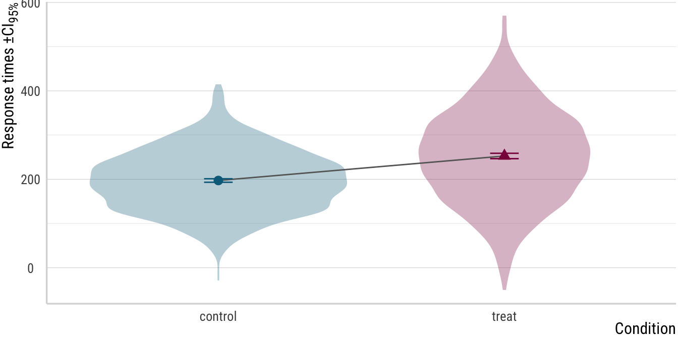And here’s that sample data set plotted, with the violins showing the raw sample response distributions: